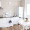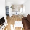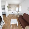 El cuarto apartamento es diferente a los anteriores pero también cuenta con dos dormitorios (uno con cama doble de matrimonio y el otro con dos camas individuales), el salón comedor con la cocina y el baño.